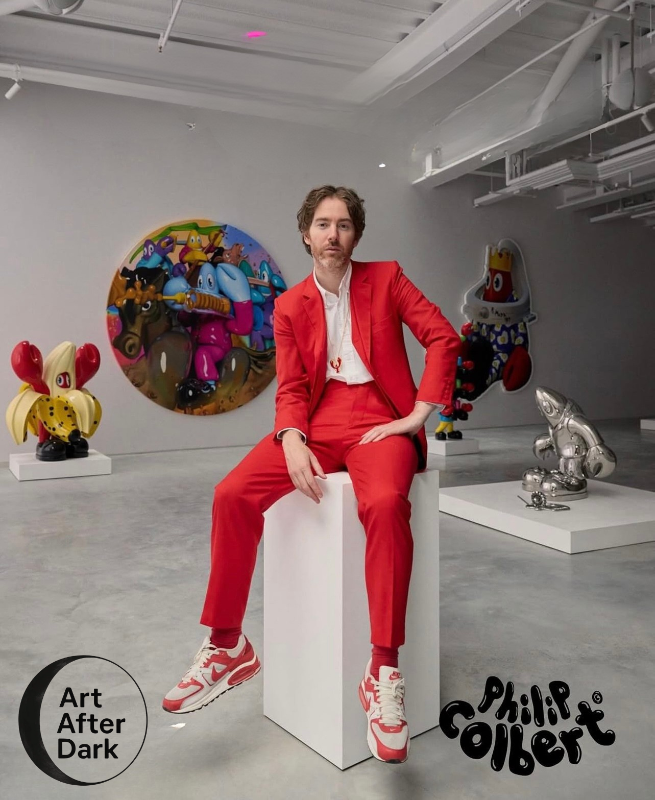 On June 24th, Art After Dark visited the acclaimed Neo pop-surrealist artist Philip Colbert, who captivated attendees at the enchanting Colbert Maison this June. The event featured a private tour of Colbert's creative space, followed by a fireside chat moderated by esteemed Art Curator Katy Richfield. Attendees were treated to insights into Colbert's artistic journey, exploring how his work, which seamlessly merges traditional techniques with digital media, reflects contemporary culture.