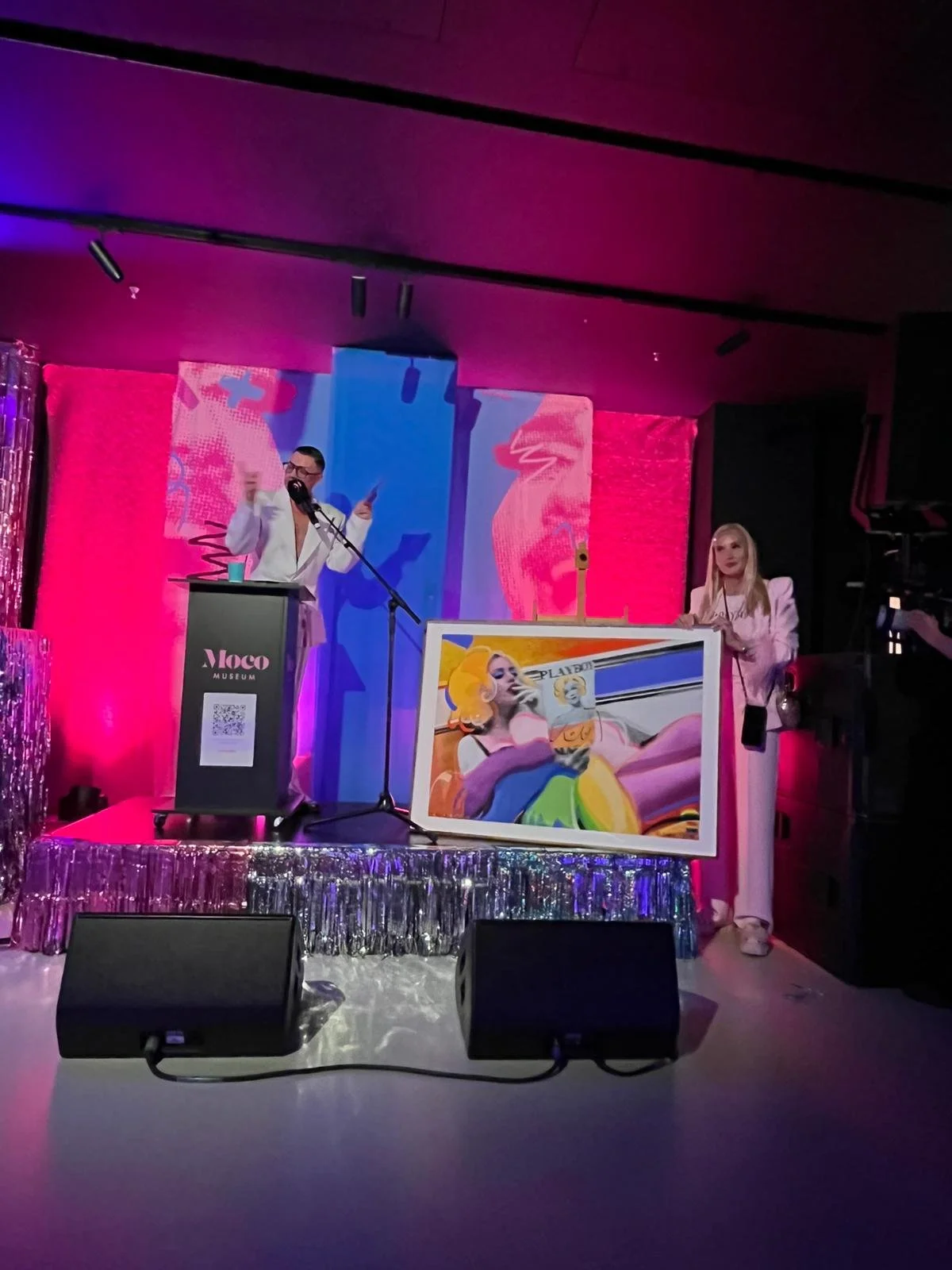 Art Curator Katy Richfield curated and hosted the art auction with Pink Noise and Daniel Lismore at London’s Moco Museum on Thursday 3rd Juy 2025 to celebrate Trans Pride Month.